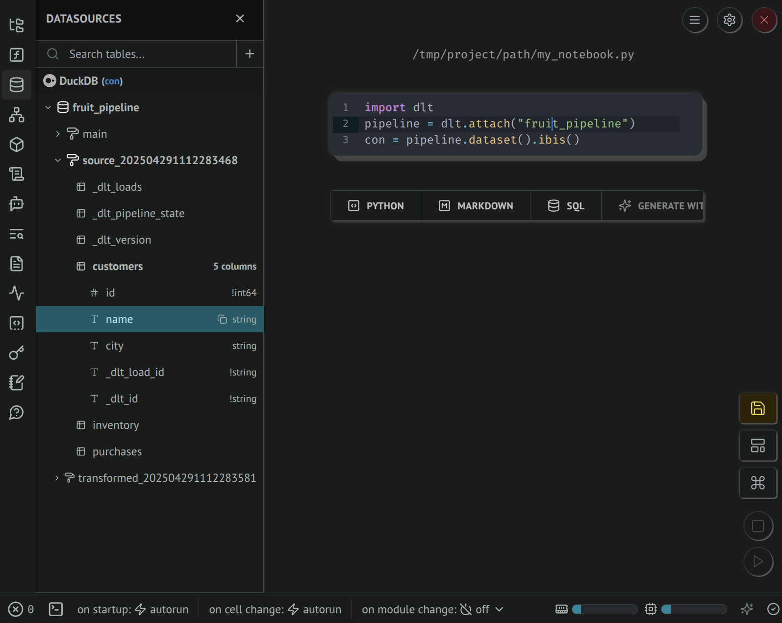 This page shows how dlt + marimo + ibis provide a rich environment to explore loaded data, write data transformations, and create data applications.